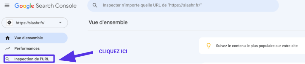 2) Utilisez l’onglet “Inspection de l’URL”